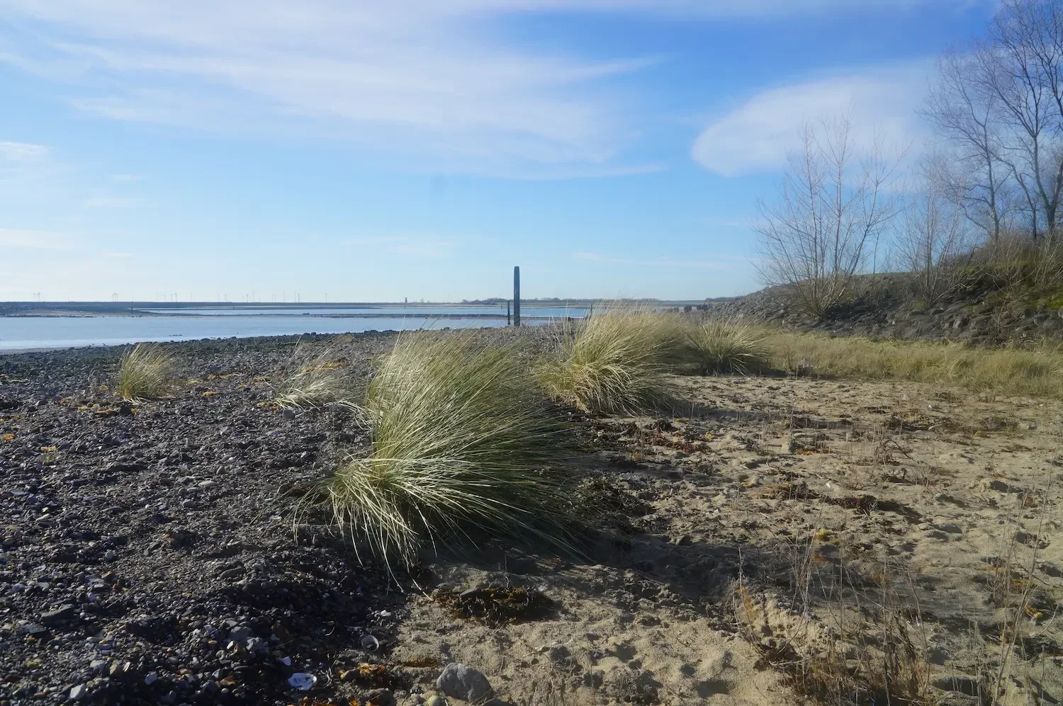 Vom Bach aus können Sie Ihre Wanderung ganz einfach zu Fuß oder mit dem Fahrrad auf einen Abschnitt entlang der Oosterschelde ausdehnen. Bei Ebbe kommt ein kleiner Strand zum Vorschein, an dem Sie im Sommer im Salzwasser der Oosterschelde sonnenbaden, planschen oder schwimmen können.